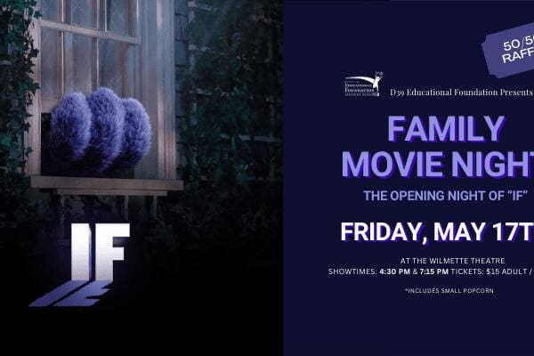 Thank you to our beloved historical Wilmette Theatre for hosting a fun family night out to benefit the foundation! With delicious concessions in hand families grabbed seats to sold out showings of the heart warming movie “IF” starring Ryan Reynolds. This fun event helped raise money for future Gripp Grants! Thank you to the D39 Community for making the evening such a success! Congratulations to Elizabeth Good and family who were our lucky 50/50 raffle winners! They won half of the funds we raised on raffle ticket sales as well as a Wilmette Theatre Family Movie Night Gift Certificate! Stay tuned for info on future Family Movies Nights!
